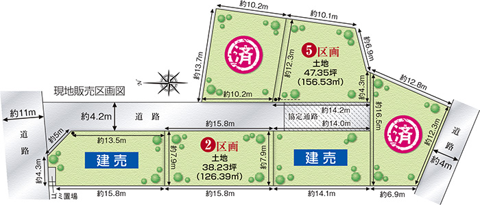| 土地面積 | 126.39㎡(1区画)〜156.53㎡(1区画) |