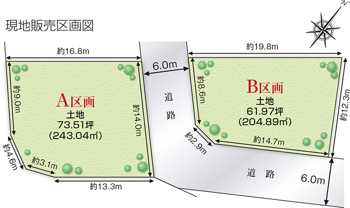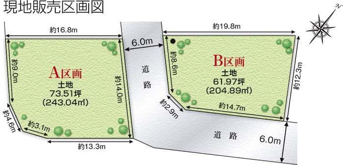| 土地面積 | 204.89㎡(1区画)〜243.04㎡(1区画) |