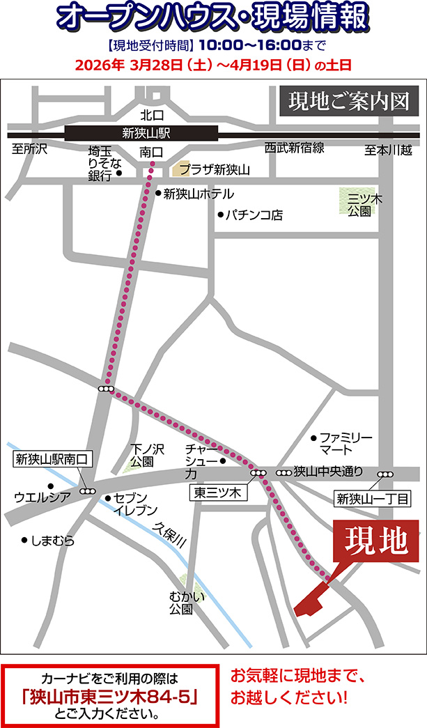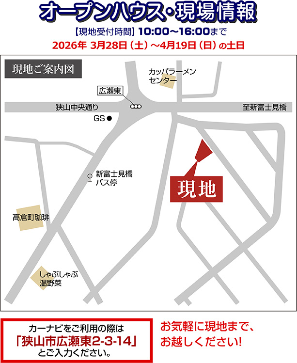 住宅展示場のモデルハウスとは違い、周辺環境も含めて、実際に住んだ場合をチェックできることがオープンハウスの最大の特徴です。