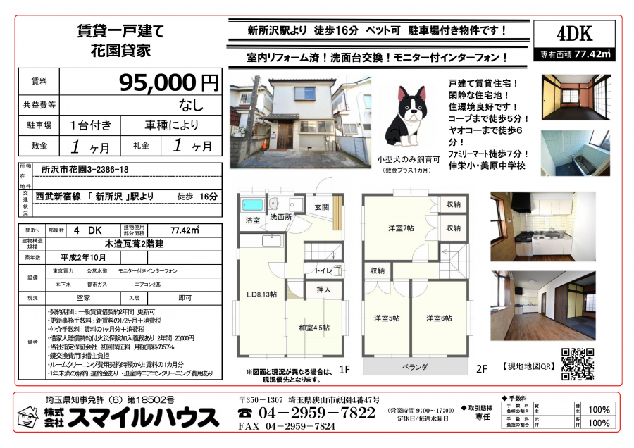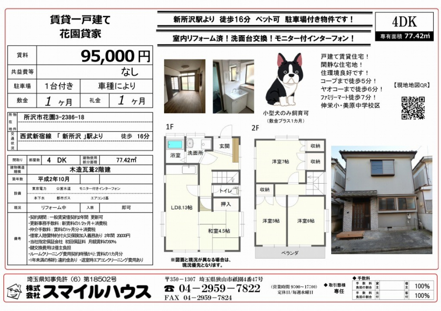 駅徒歩16分、小型犬飼育可能な戸建て住宅です。リフォーム箇所多数あり、きれいな物件です。ぜひご内見下さい。