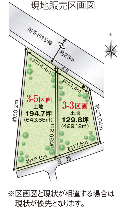| 備考 | ・国道463号線に面した約324坪!(2区画合計) ・日用品店舗・駐車場に適した立地! ・2区画同時購入可 |