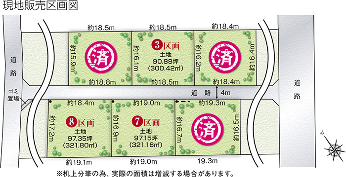 | 土地面積 | 300.42㎡(1区画)〜321.80㎡(1区画) |