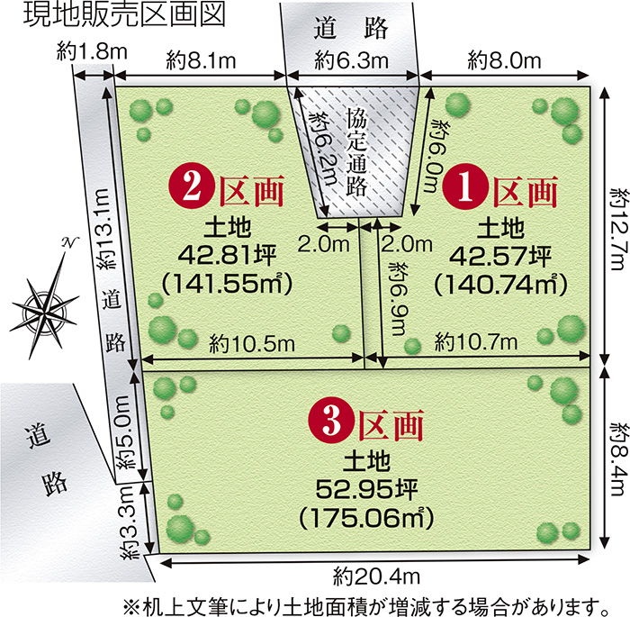 | 土地面積 | 140.74㎡(1区画)〜175.06㎡(1区画) |